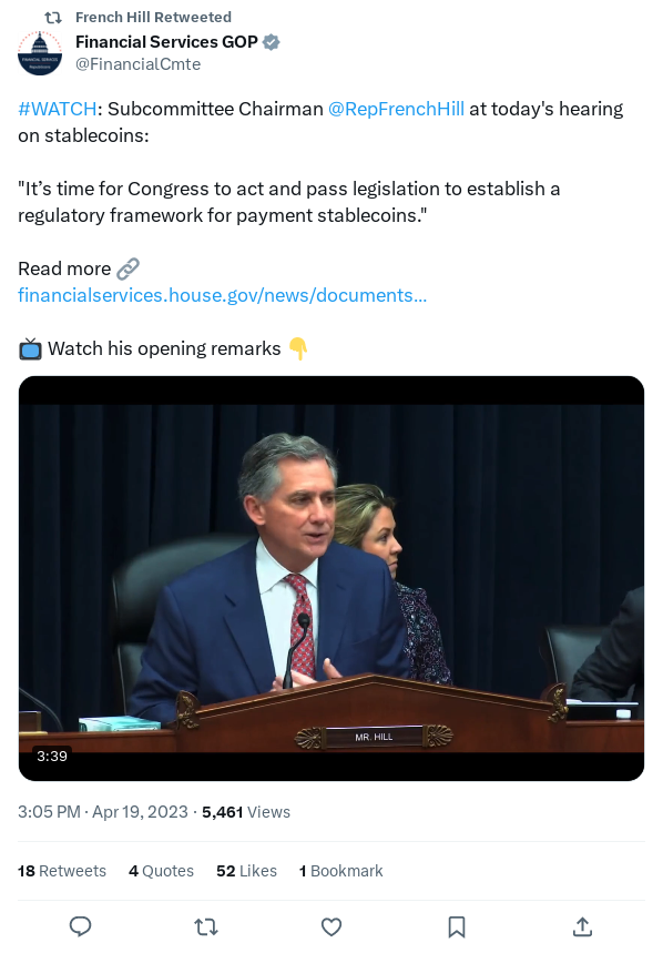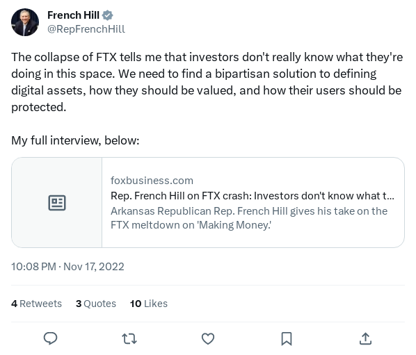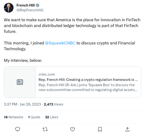 French Hill's Record on Bitcoin, Cryptocurrencies, and Blockchain