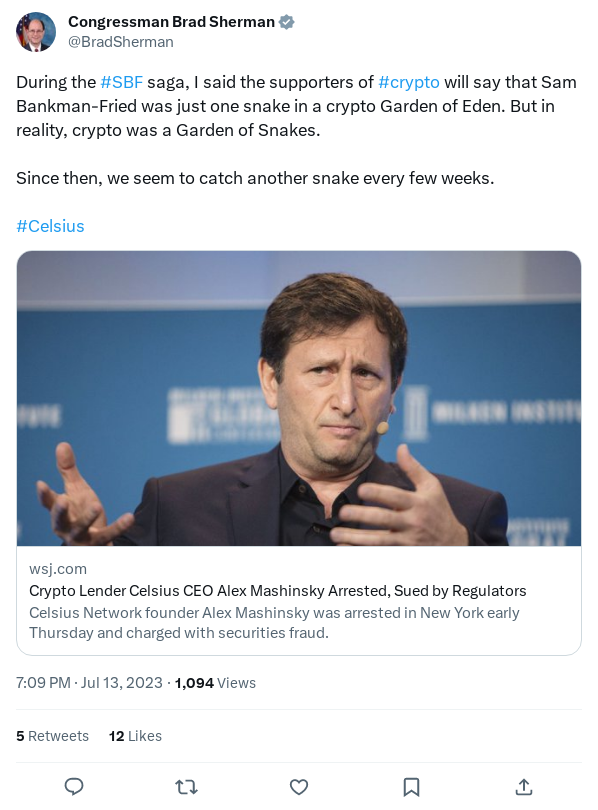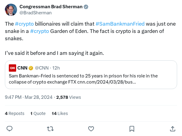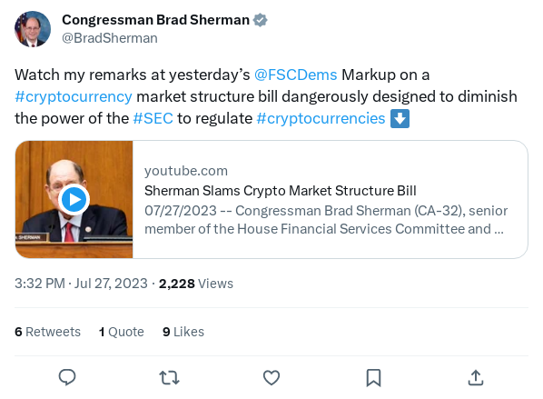 Brad Sherman's Record on Bitcoin, Cryptocurrencies, and Blockchain