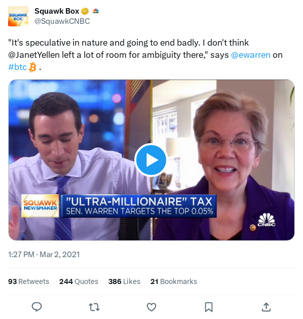 Elizabeth Warren's Record on Bitcoin, Cryptocurrencies, and Blockchain