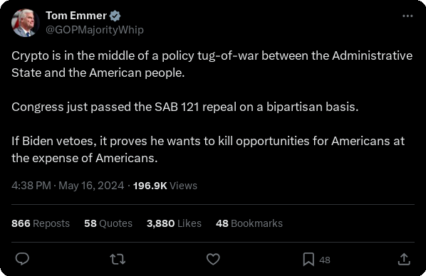 Tom Emmer's Record on Bitcoin, Cryptocurrencies, and Blockchain